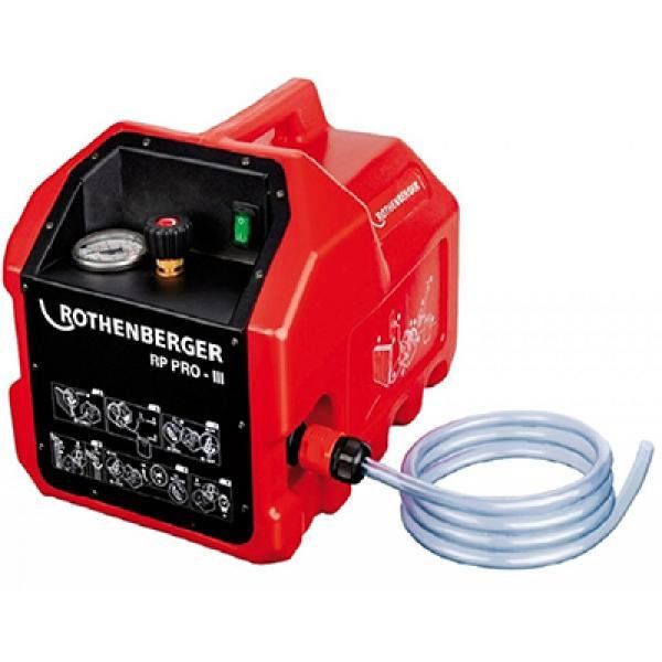 Электрический насос для опрессовки трубопроводных систем Rothenberger, представляет собой проверочный электроопрессовщик для автоматического испытания на герметичность трубопроводных систем давлением до 40 бар. Устройство можно использовать для смазочных материалов и воды. Подача жидкости производится двумя способами на выбор - нагнетанием или самовсасыванием.