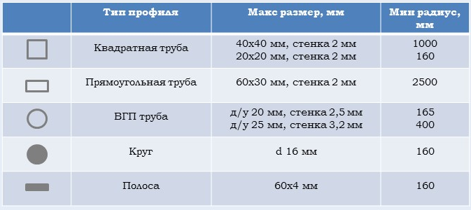 - Станок используется на различных видах производства, при изготовлении заготовок таких как – навесы, арочные металлоконструкции, детские и спортивные площадки, стулья, парты, теплицы, кровати, своды, каркасы столов, диванов и т.д.