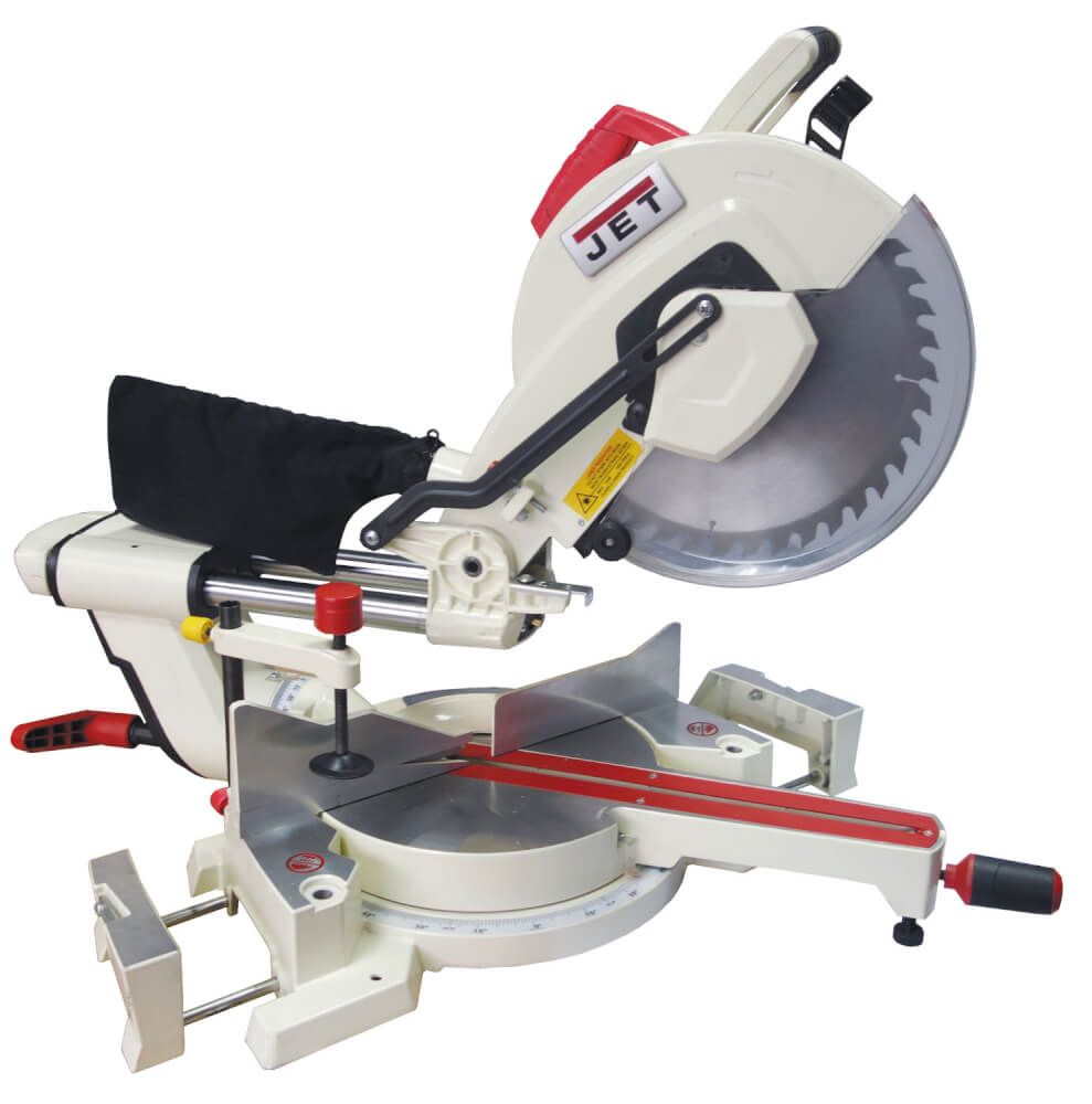 Jet JSMS-12L торцовочно-усовочная пила с большим (305 мм) диском и возможностью его «протяжки» (перемещения вдоль линии реза по цилиндрическим направляющим).